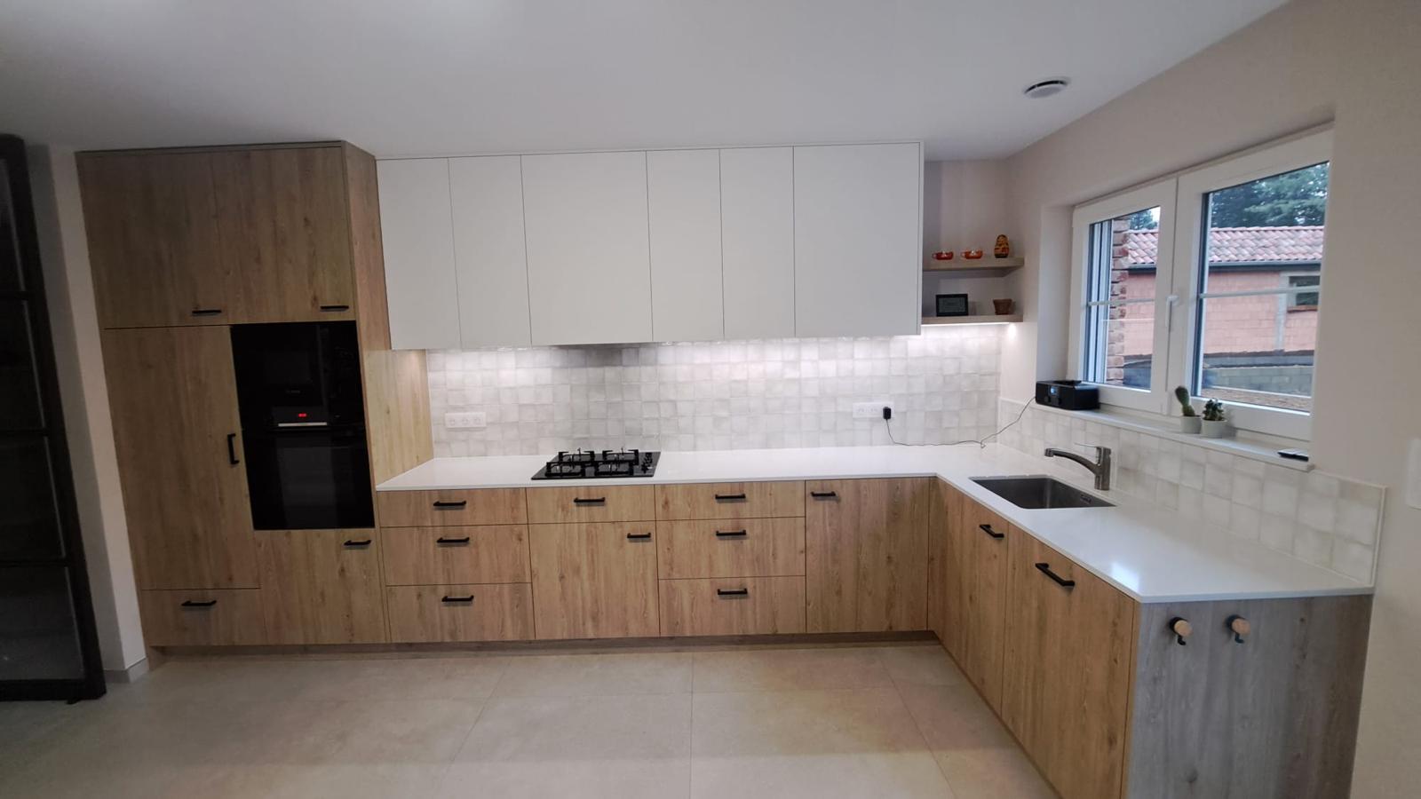 Cuisine en L chêne et blanc